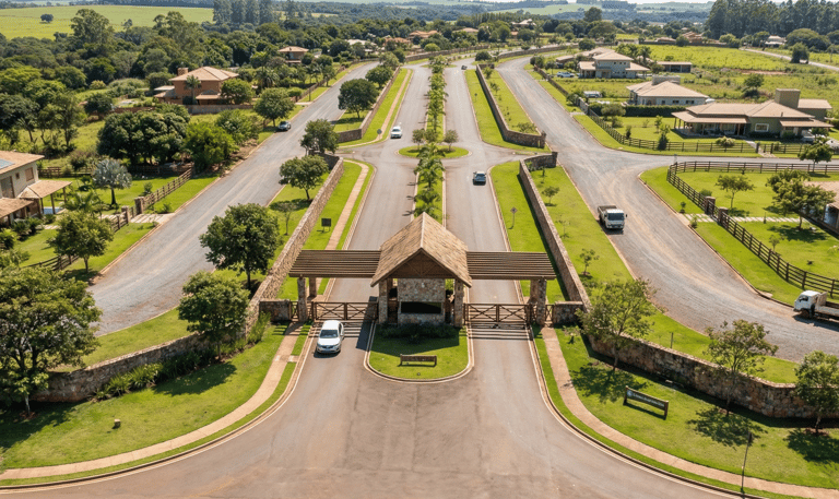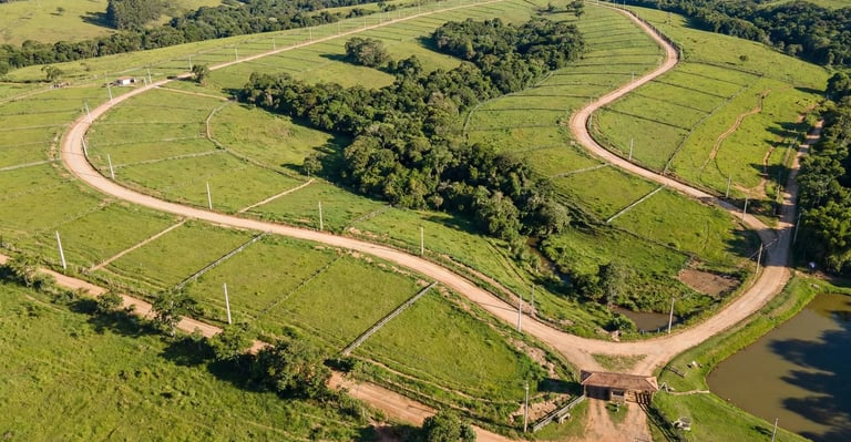 Empreendimentos de chácaras e veraneio com implantação planejada, acessos estruturados, áreas comuns definidas, infraestrutura completa e melhor aproveitamento do terreno, com viabilidade legal e aprovação do projeto.