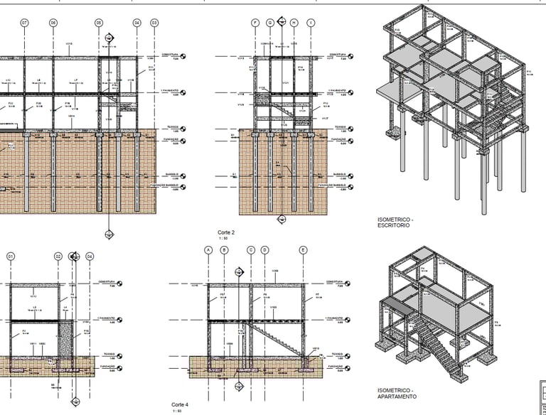 Desenvolvemos projetos executivos completos, detalhados e compatibilizados em BIM, garantindo uma obra mais rápida, segura e livre de interferências. Nosso processo integra arquitetura, estrutura e instalações desde o início, entregando desenhos claros, quantitativos precisos e documentação completa para planejamento, compras e execução.