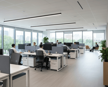 Cada escritório é planejado com foco em eficiência operacional, organização, conforto, ergonomia e experiência do colaborador, sempre alinhado à cultura, aos processos e aos objetivos estratégicos do negócio.