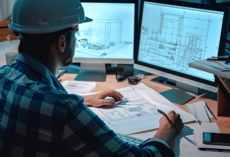 Atuamos de forma estratégica em arquitetura corporativa — projetos de escritórios, coworkings, edifícios comerciais e ambientes empresariais — e em arquitetura industrial, com soluções completas para galpões logísticos, atacadistas, centros de distribuição e fábricas. Todos os projetos são desenvolvidos com abordagem técnica integrada, priorizando funcionalidade, otimização de layout, fluxo operacional e conformidade normativa.