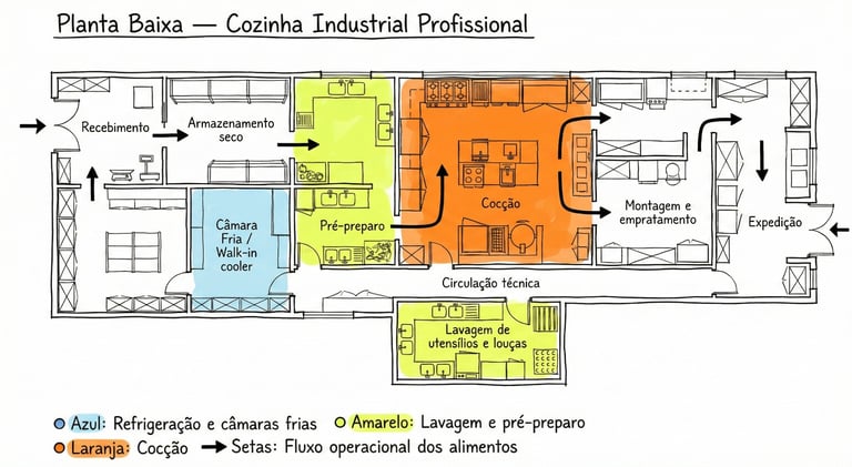 Entenda como a arquitetura e o layout de restaurantes industriais e franquias impactam operação, custos e expansão. Projeto técnico, funcional e replicável.