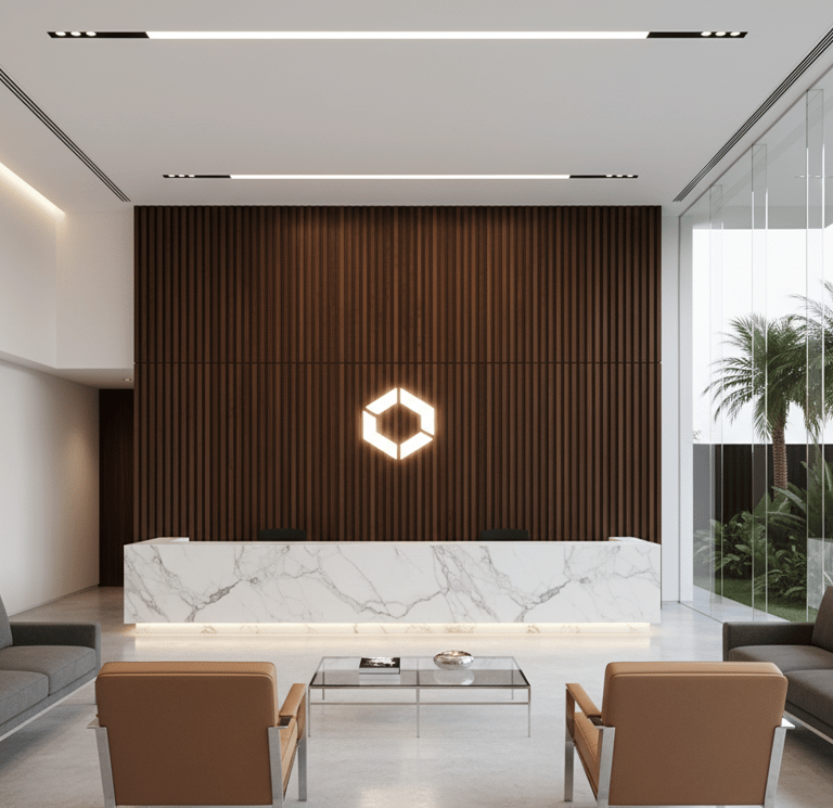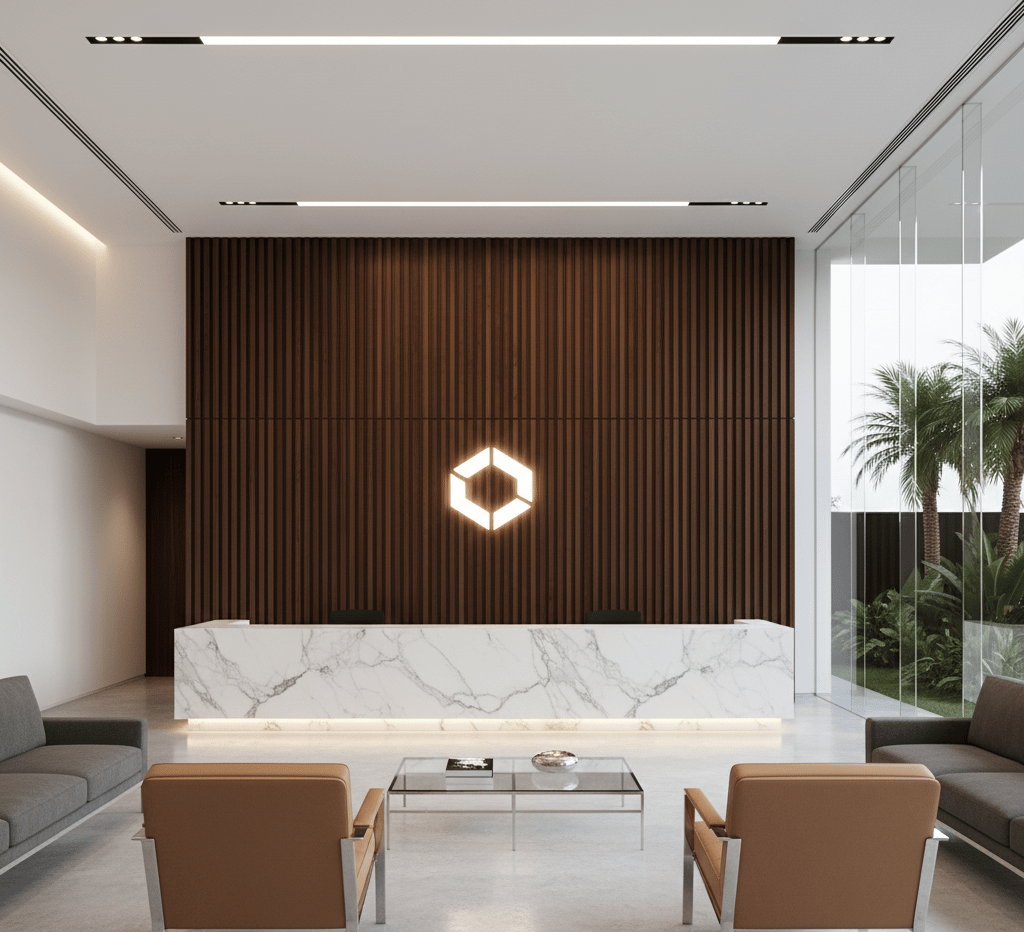 O Studio Âmbito atua com arquitetura corporativa orientada à governança, imagem e desempenho, integrando layout, operação e viabilidade legal.