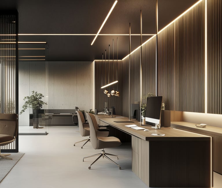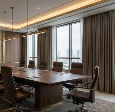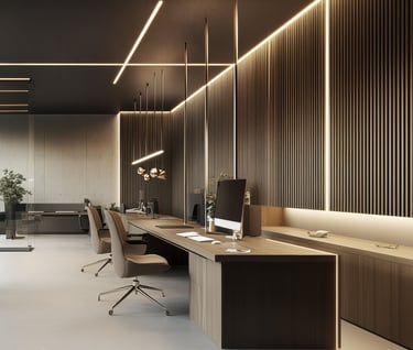 Espaços essenciais para gestão, tomada de decisão e operação empresarial, planejados para conforto, privacidade, ergonomia, desempenho e identidade corporativa, com viabilidade legal e execução segura